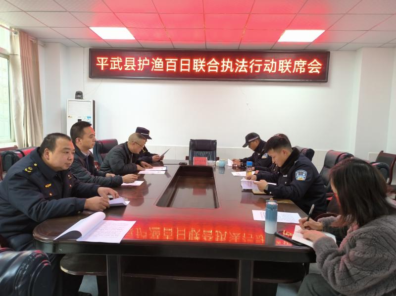 在 “护渔百日联合执法行动”启动联席会上,县各执法单位对春季禁渔 “护渔百日联合执法行动”做交流发言,总结历年禁捕工作,对本年度工作重点提出建设性意见。县禁捕领导小组办公室对本年度禁渔工作做相应安排部署。会议进一步健全农业农村、公安、综合执法、交通、水利和市场监管部门和乡镇人民政府联合执法、联合办案和重大案件会商等相关工作机制,提高运行效率。落实规范渔具市场销售及人工养殖水产品的产、供、运、销和餐饮等重点环节的生产经营行为监管,全面加强对非法捕捞及采购、加工、销售、利用非法渔获物等危害水生生物资源的各类违法行为的执法监管与打击,有效降低案件发生率,确保“禁渔令”落实落地,为修复水域生态和保护涪江、平通河、通口河等流域生物多样性提供有力法治保障。