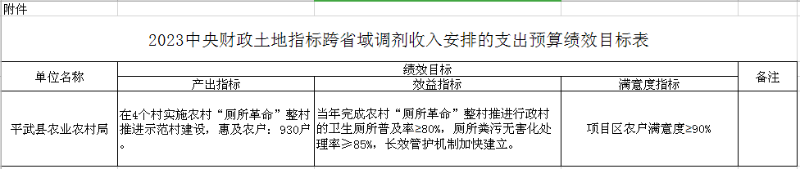 附件:2023中央财政土地指标跨省域调剂收入安排的支出预算绩效目标表